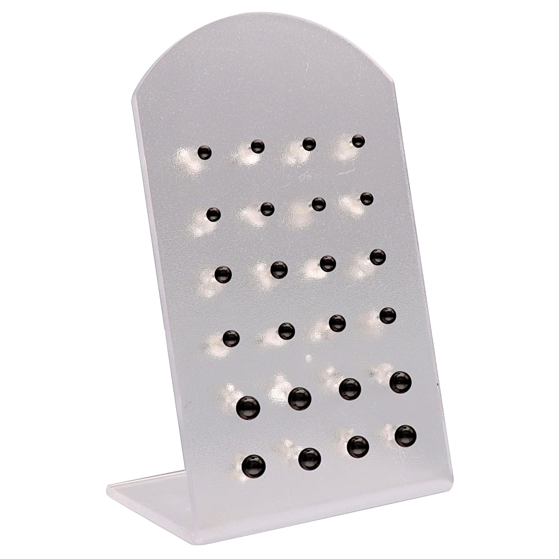Odkryj nasz profesjonalny zestaw 12 par srebrnych kolczyków sztyftów (wkrętek), wykonanych z wysokiej jakości srebra próby 925 i pokrytych trwałą warstwą czarnej emalii. Każdy kolczyk zakończony jest gładką, kulką o średnicy 2.5, 3 i 4 mm, oferując subtelny i minimalistyczny wygląd.