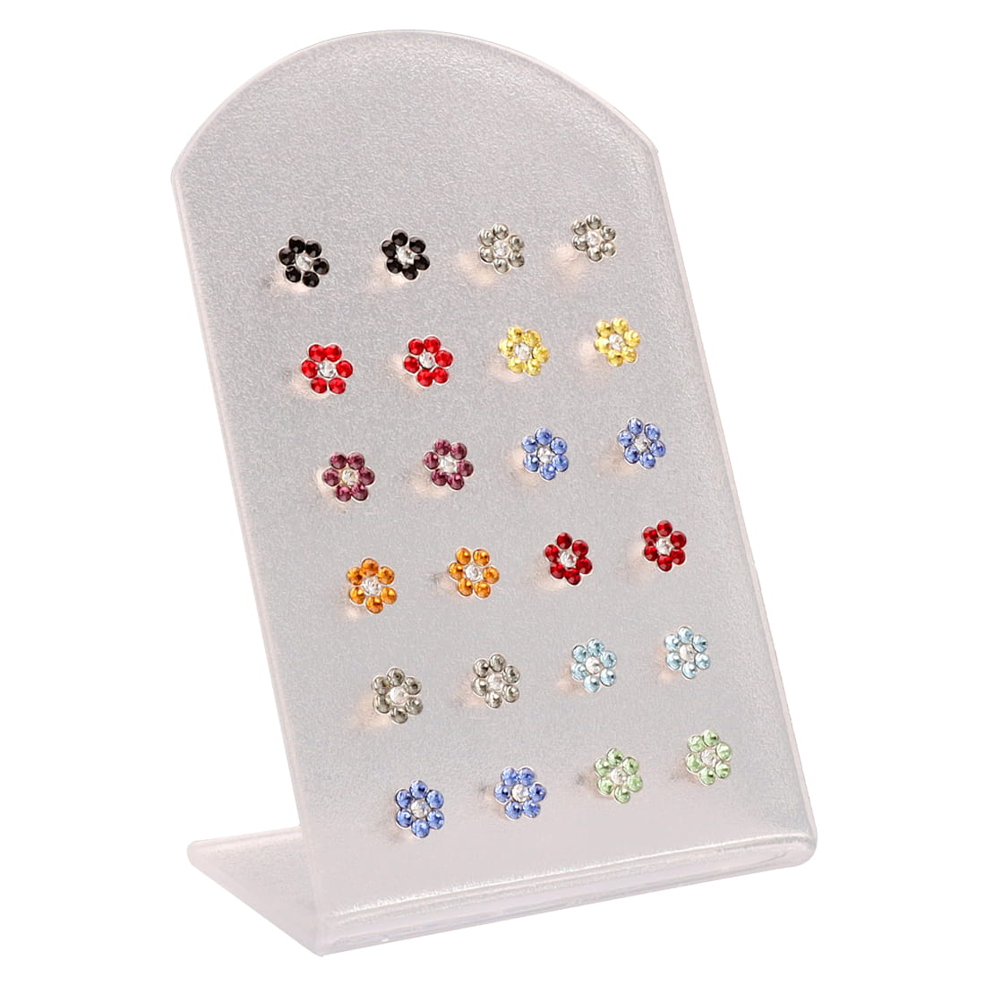 Odkryj nasz zestaw 12 par srebrnych kolczyków sztyftów (wkrętek), wykonanych z wysokiej jakości srebra próby 925 z kolorowymi kwiatkami oferujący radosny i wiosenny nastrój.