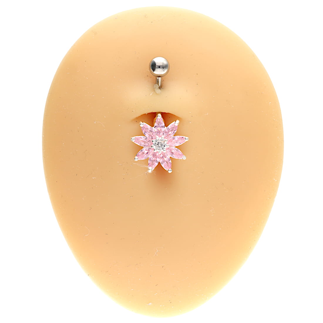 Dekoracyjny wygięty kolczyk do pępka, banan ze stali chirurgicznej w naturalnym srebrnym kolorze. Do banana dowieszona jest ozdoba ze Srebra próby 925 i zakuwanych cyrkonii.